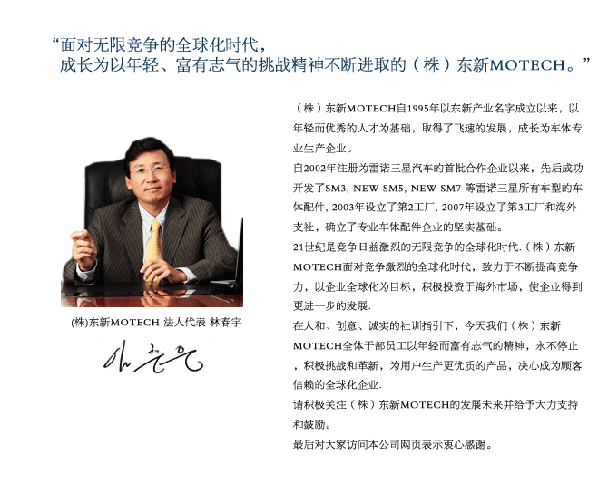 东新介绍 > 法人代表 致辞